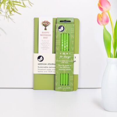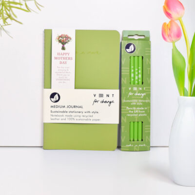 We combine beautiful award-winning design with impeccable eco-credentials. Everything in the VENT range is made using recycled and sustainable materials. From notebooks made using reclaimed leather, cotton and wool with certified sustainable papers to pens made from recycled plastic drinks bottles. VENT even have their own pencil factory in the UK making pencils from recycled CD cases.