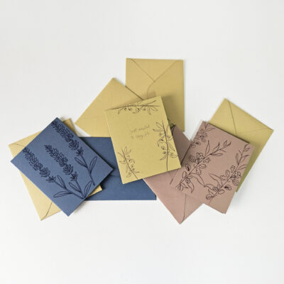 – Set of 10 blank A6 notecards and matching envelopes