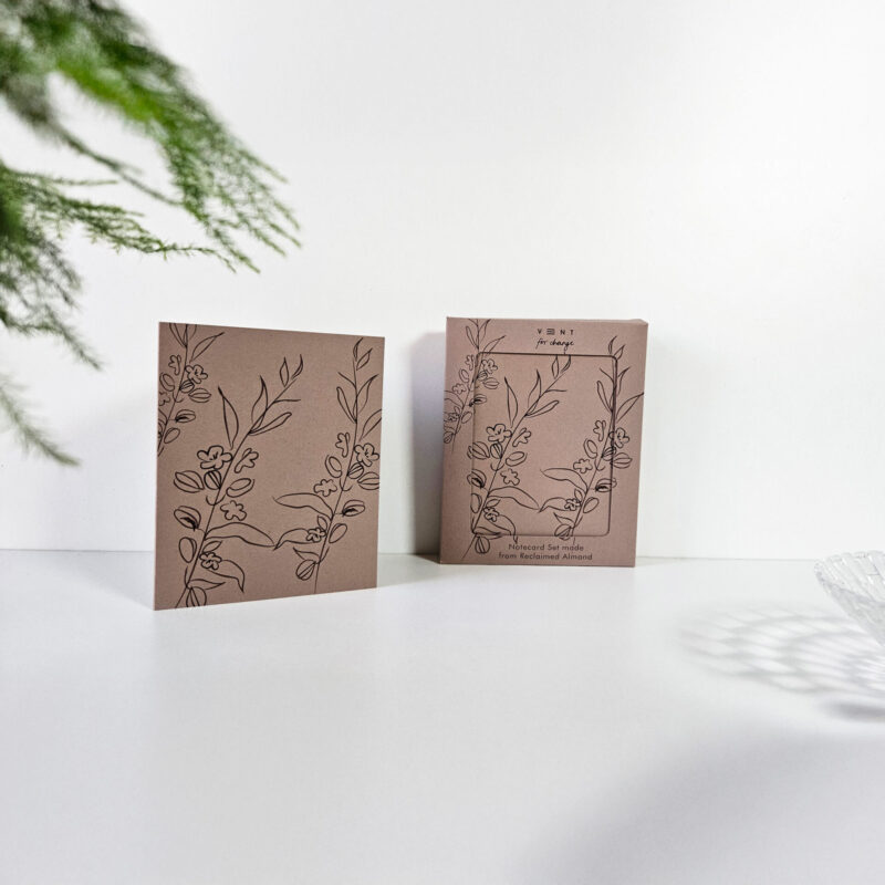 Notecard Sets – Cards made from reclaimed almonds with 100% certified sustainable card.