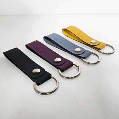 Recycled leather keyring. Subtly debossed to front and back. 30mm split ring and popper fastener. Made in Italy 95 x 20mmnd out more CLICK HERE